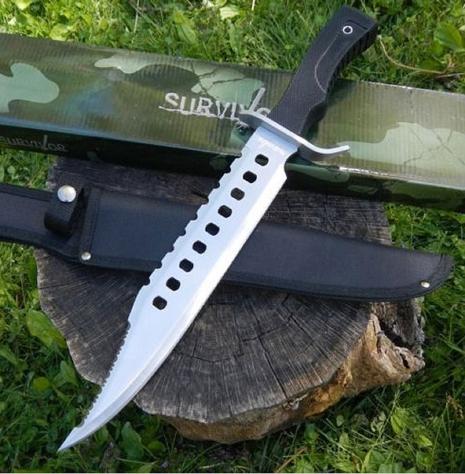 So you are looking for a heavy duty knife for intense hunting sessions? This Tactical Hunting Rambo Knife is worth a look. It is a 17″ full tang fixed blade knife made of 440 stainless steel. It has a comfortable grip and a convenient sheath. The blade is about 11.5″ long.