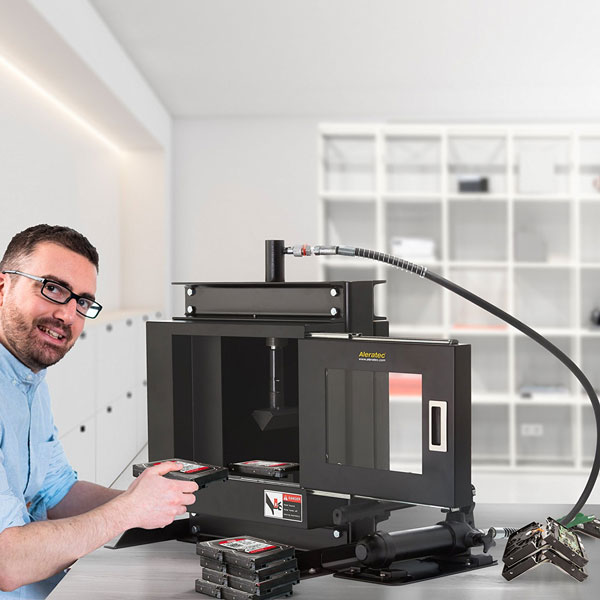 Every business owner knows the importance of destroying old hard drives properly. The Aleratec HDD Drive Demolisher V2 is a hard drive destroyer that can crush 2 x 3.5 or 2.5″ HDDs. It features a manually operated hydraulic pump. The crushing mechanism is fully enclosed for your safety.