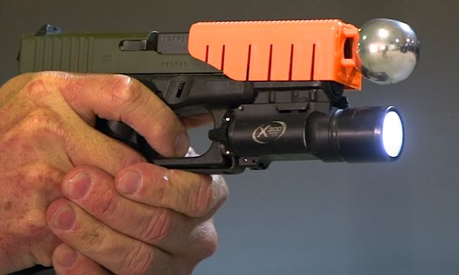 This is the Alternative: a less lethal self defense tool that can save lives. It attaches to the front of the gun and delivers significant impact when shot. The first shot is more like a warning. A new round is cycle in to allow the officers to defend themselves.