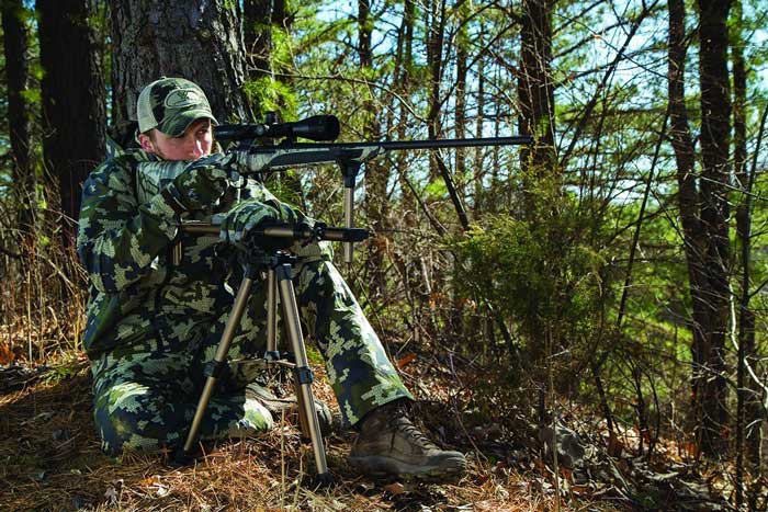 Meet the Caldwell DeadShot FieldPod: a rifle shooting rest that provides you with a stable frame for hunting sessions. The rear and front supports are independently height adjustable. It weights under 6 pounds and can be adjusted from 20 to 42 inches.