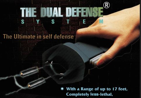 Meet the Dual Defense Shooting Stun Gun: a self defense tool that can dispose lighting strike cassette up to 17 feet away. It can incapacitate an attacker for up to 15 minutes. The device also has an intimating arc spark or crackling sound to scare off potential attackers.
