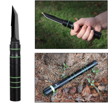 Here is a survival knife with a tactical flashlight torch that gets you unstuck outdoors. The Findway Self Defense Survival Knife is designed for hunting and camping. It has a 7.6″ survival knife with a 300lm adjustable flashlight with 3 modes. This can also serve as a defensive hammer.