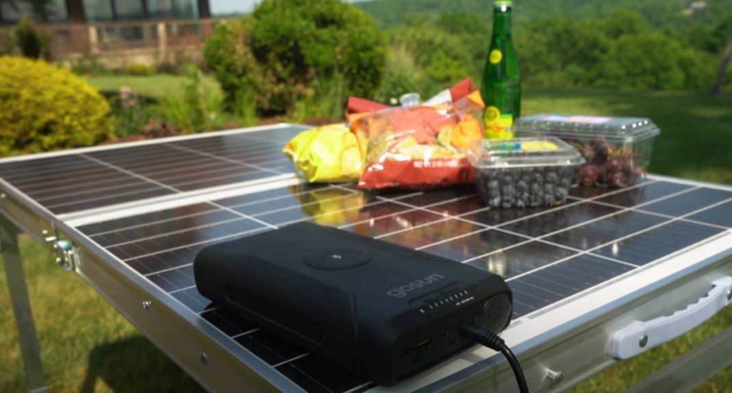 This is the GoSun SolarTable Pro: a camping table with a 120-watt solar array that keeps your gadgets charged. You can adjust the table’s angle to improve solar energy protection. The SolarTable Pro combines with the Power 266 powerbank, so you can store energy for your drones, tablets, laptops, and everything in between.