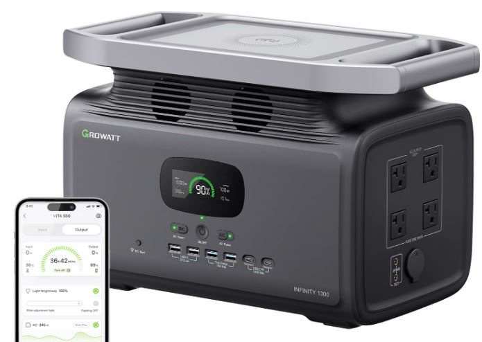 The GROWATT Infinity 1300 has a 20ms UPS function. It has a smart battery management system built-in. It weighs only 22lbs, so you can take it with you anywhere.