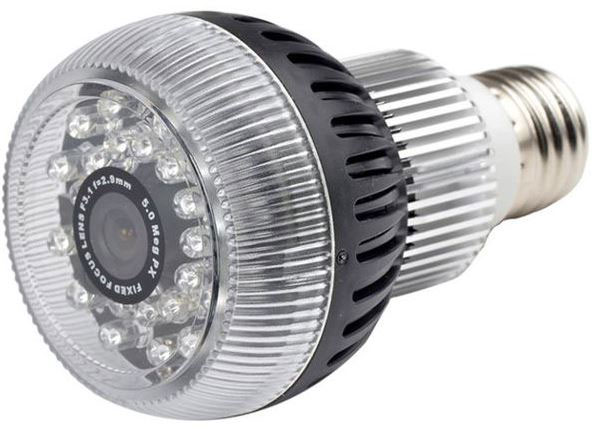 The HCWifiBulb records to MicroSD cards up to 32GB. It has auto exposure control.