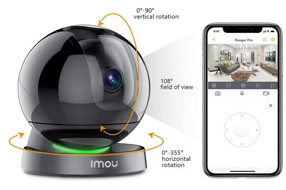 Meet the Imou 360-degree Indoor Wireless Camera: a smart camera with 2-way audio, night vision, sound detection, and auto tracking that helps you keep an eye on your home. It comes with local and cloud storage. It has 0-355-degree pan and 0-90-degree tilt functionality.