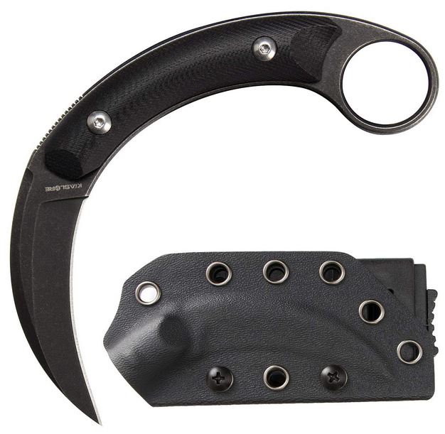 Meet the KIASLORE Karambit Claw Knife: a compact tactical blade that you can take with you anywhere. It measures 5.5″ overall with a 3.14″ blade. The blade weighs only 9.6oz. It has a D2 steel construction with a G10 handle.