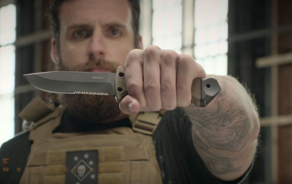 Meet Gerber LMF II: a 10″ survival knife with rugged design that gets you out of trouble outdoors. It has a black oxide coated blade and striking pommel which you can use it to break through plexiglass. LMF II can be used to cut firewood and anything else. Its sheath has a fire retardant coating.