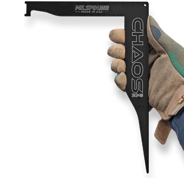 Meet the Milspin CHAOS Bar: a handy gadget that you can use to easily open locked doors in any setting. It has a heavy duty steel construction with powder coat finish. It works on inswing and outswing doors. It is L shaped to increase your leverage. This tool has a lightweight design. It is made for non-destructive entry.