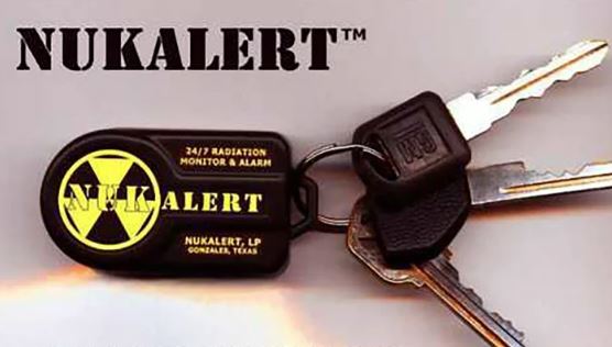 Meet the NukAlert: a keychain nuclear radiation detector that you can take with you anywhere to get alerted to danger. It can detect gamma and x-ray radiation exposure (100 mR/hr to 5,000 R/hr & 20 keV to above 2 MeV). This gadget has 10 chirping alarms. It can survive drops from 6ft.