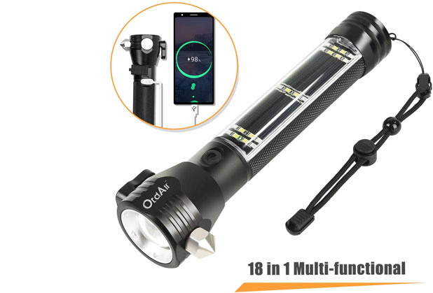 Here is another flashlight designed to get you out of trouble. The Otdair Solar Tactical Flashlight delivers 500 lumens of light. It has 5 light modes, including a SOS mode. You also get a 120dB alarm.