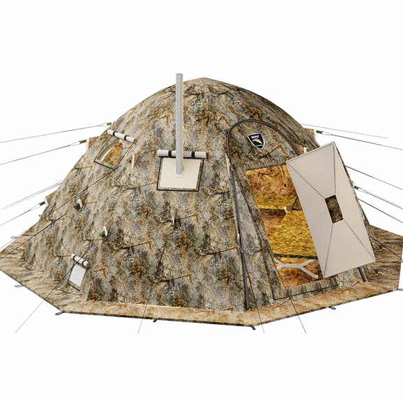 The UP-5 winter tent has enough space to accommodate up to 8 people. It is great for ice fishing and other cold weather adventures.