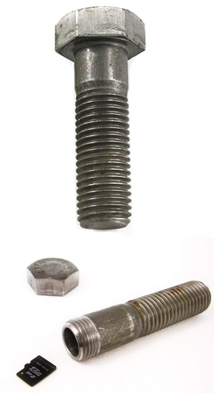 Here is a bolt with a hidden container inside for your cash, memory cards, and everything in between. The Spy Bolt comes with reverse threading to prevent accidental opening. It measures 11/16″ in diameter inside.