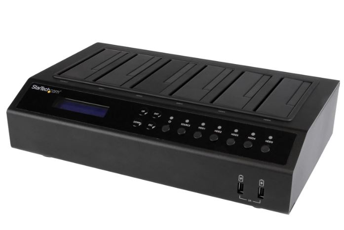 Duplicating and erasing a bunch of hard drives manually can be time consuming. The StarTech 6-Bay Hard Drive Duplicator/Eraser is a 1:5 HDD/SSD cloner that doubles as a data sanitizer. It has a standalone operation. It comes with a digital display to show the info.