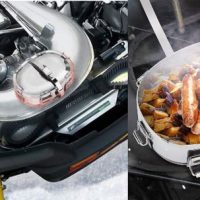 Here is a food warmer that combines with your snowmobile to let you enjoy a hot meal outdoors. It installs to your...
