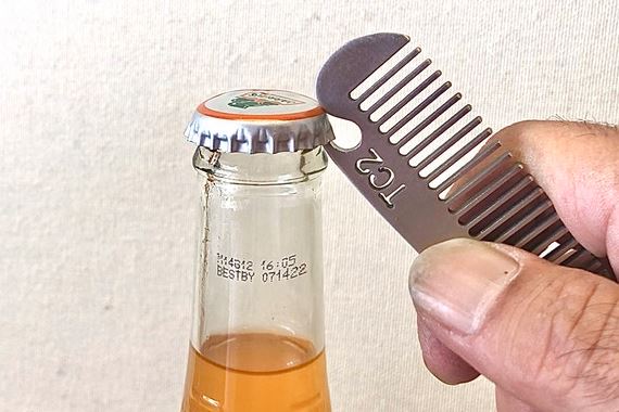 Meet the Ti-COMB2: a G5 Titanium Comb that also works as a bottle opener, hex wrench and pry tool. It is compact enough to easily fit in your pocket and purse. The TC2 is designed to easily fit on your keychain. It measures 3.5” x .80” x .115”.
