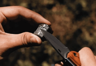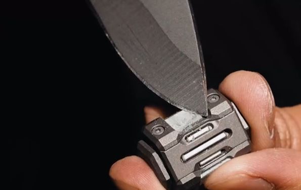 This is the TiSpinx: a nifty wearable gadget that helps you get unstuck in the outdoors. For starters, it has a very stylish look. It serves as a small knife sharpener but also has room for tritium tubes. You can even use this as a fidget spinner. The TiSpinx has 9 tritium slots. You can use it as a lanyard bead or wear it around your neck.