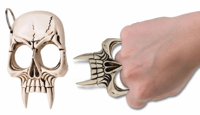 This self defense tool has skull design on both sides. You can find out more about it here.