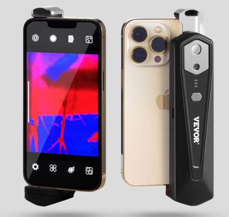 Here is a smart thermal camera that you can use with your iOS and Android device for repairs. The VEVOR Thermal Imaging Camera has a temperature detection range of -4 to 1022F. It is IP54 rated. With 25Hz refresh rate, you get a smooth view. This thermal imager has a 256 x 192 IR resolution and 640 x 480p visible light resolution.