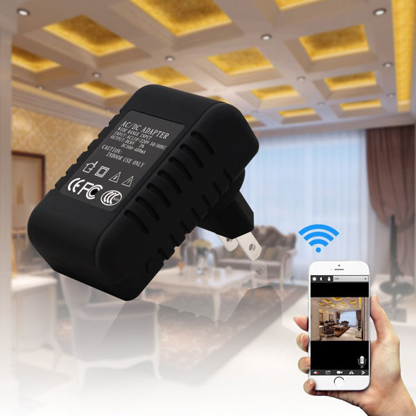 Here is an adapter with a hidden camera and motion detection to record covert video. The VOTECOM Wi-Fi Hidden Camera captures video in 1080p format. It lets you view the video from your smartphone. The companion app notifies you when motion is detected. It has 7 adjustable sensitivity levels.