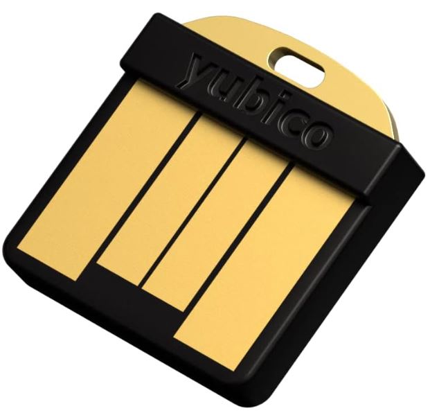 This is the YubiKey 5 Nano: a 2-factor authentication security key that lets you access your most important accounts with peace of mind. It is FIDO certified and works with Chrome and FIDO complaint applications on Windows, Mac OS, and Linux. It its regular USB ports.